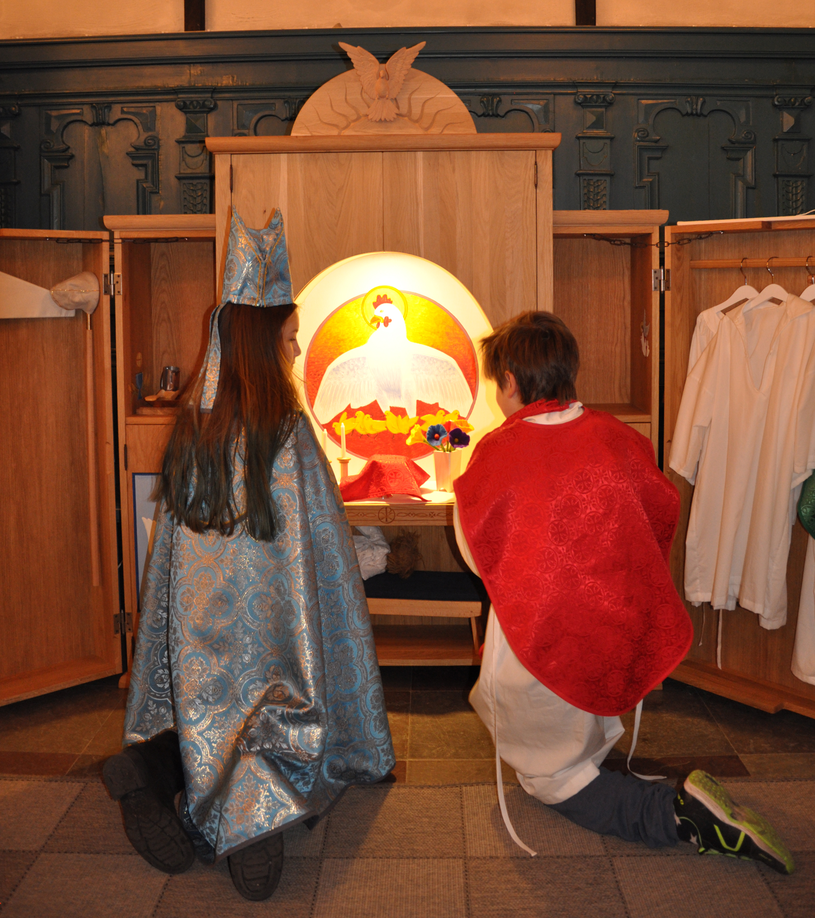 Leksacer är ett "altarskåp" där barn och vuxna kan hitta alla de saker som används i gudstjänster. Det är en pedagogisk, inspirerande och lekvänlig miljö för barn i alla åldrar, en miljö som harmonierar med kyrkorummet, dess symbolvärld och övrig utsmyckning. Här kan man klä ut sig till biskop, präst eller diakon. Man kan leka dop, nattvard, vigsel eller begravning och fritt söka sig fram i kyrkans värld.