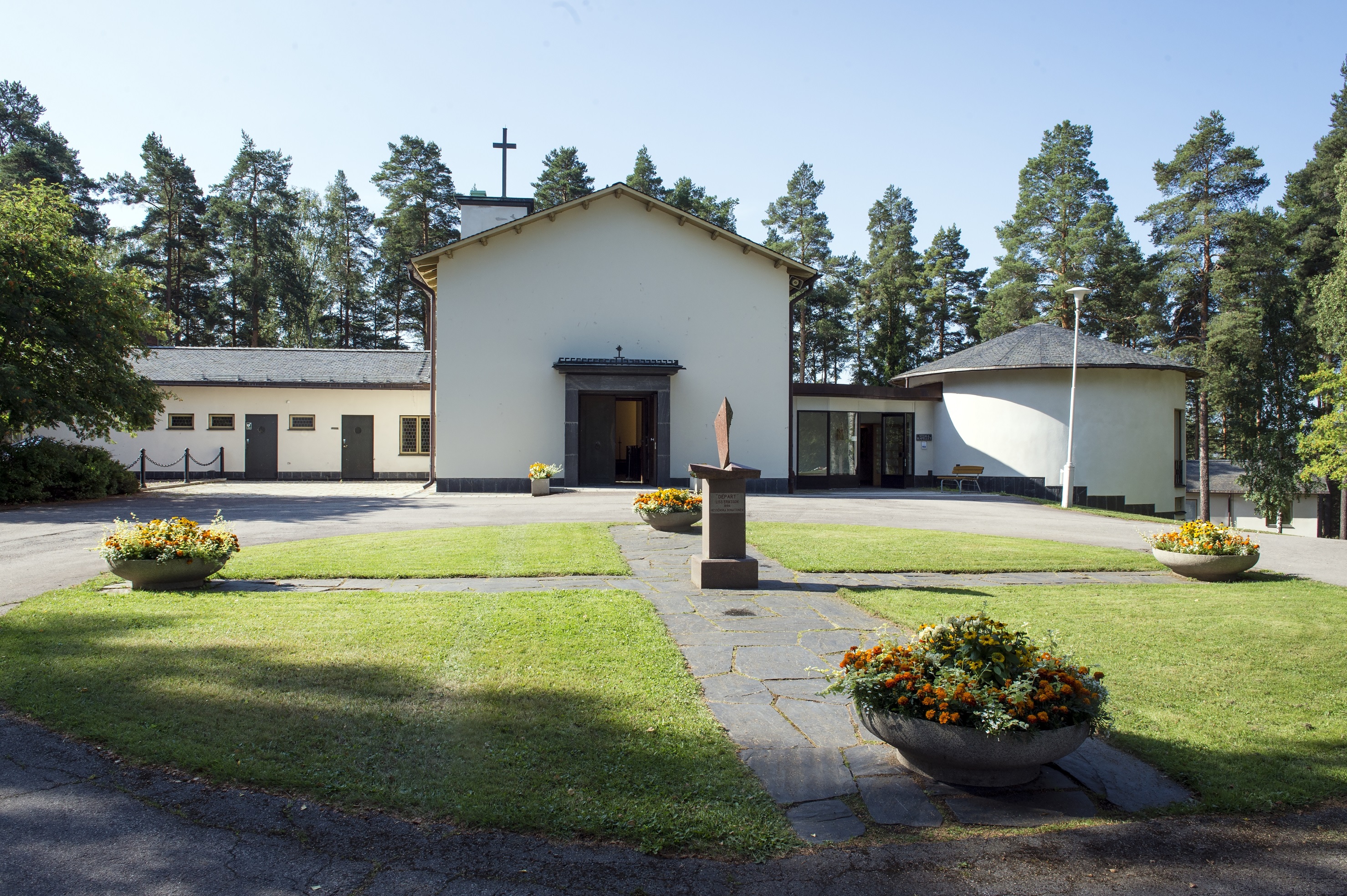 I anslutning till kapellen ligger det samtidigt uppförda krematoriet. En ny tillbyggnad av krematoriet blev klar hösten 2018.