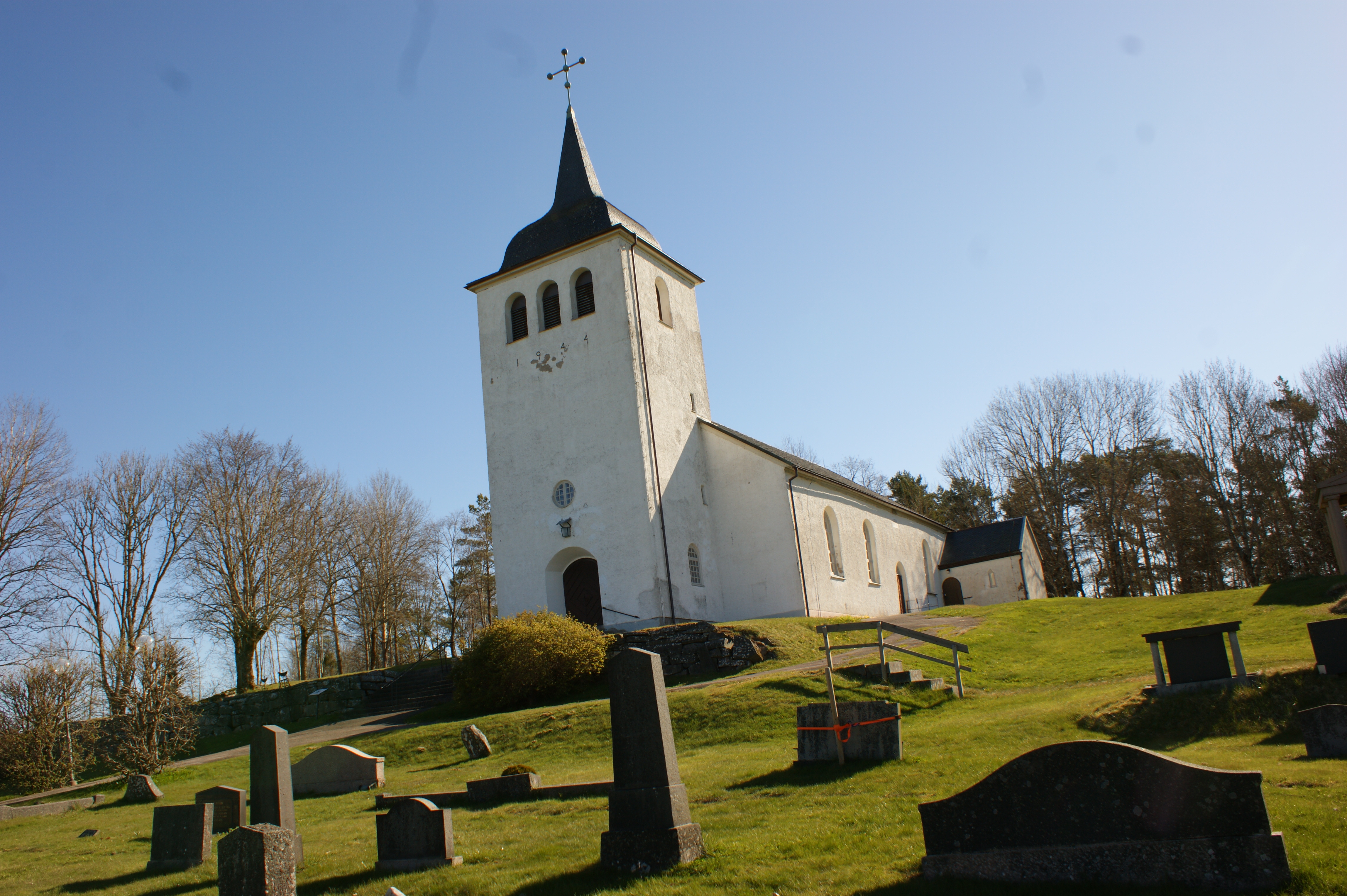 En vitmålad stenkyrka, ligger 7 km väster om Högsäter. Kyrkan ligger på en höjd vid en mindre bebyggelse med en gammal skolmiljö där vägar möts från flera olika håll.