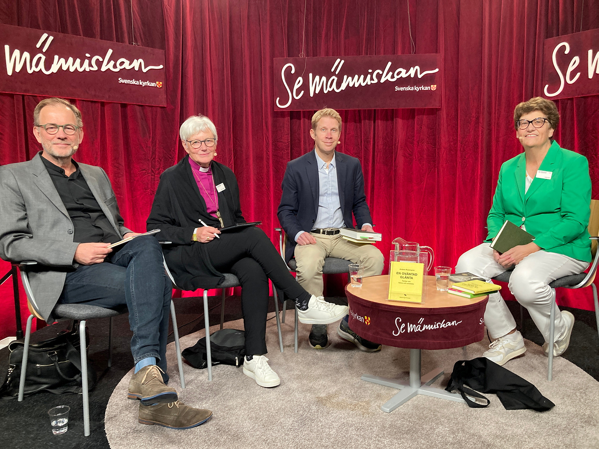 Med biskop Susanne Rappmann, imam Kashif Virk, författare Anita Goldman och ärkebiskopens teologiska sekreterare Jakob Wirén.