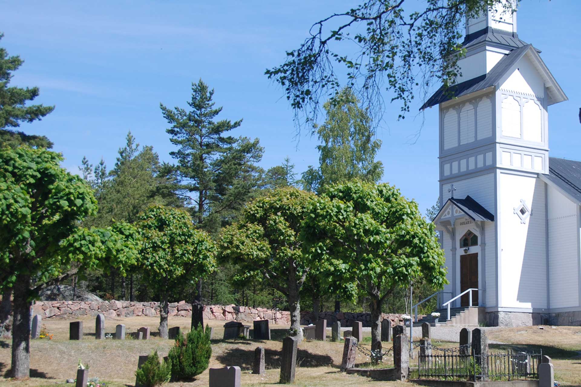 Ornö kyrka i modern schweizerstil