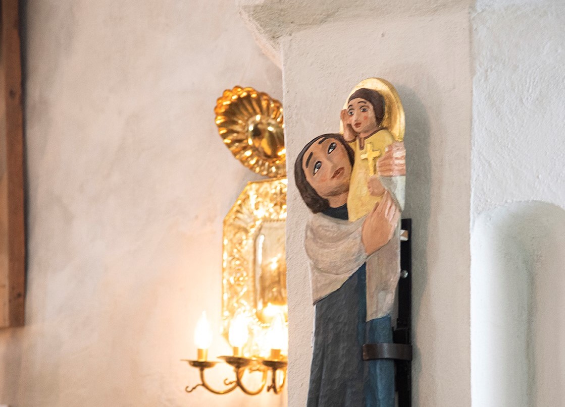 Det finns flera medeltida träskulpturer i kyrkan som ligger så vackert på en höjd ovan Nätraån. En av de mer omtalade är madonnan från tidigt 1500-tal som försvann från kyrkan 1999, när en kyrktjuv härjade i Mellannorrland. Först sex år senare hittades hon i en lägenhet på den spanska semesterön Teneriffa.
