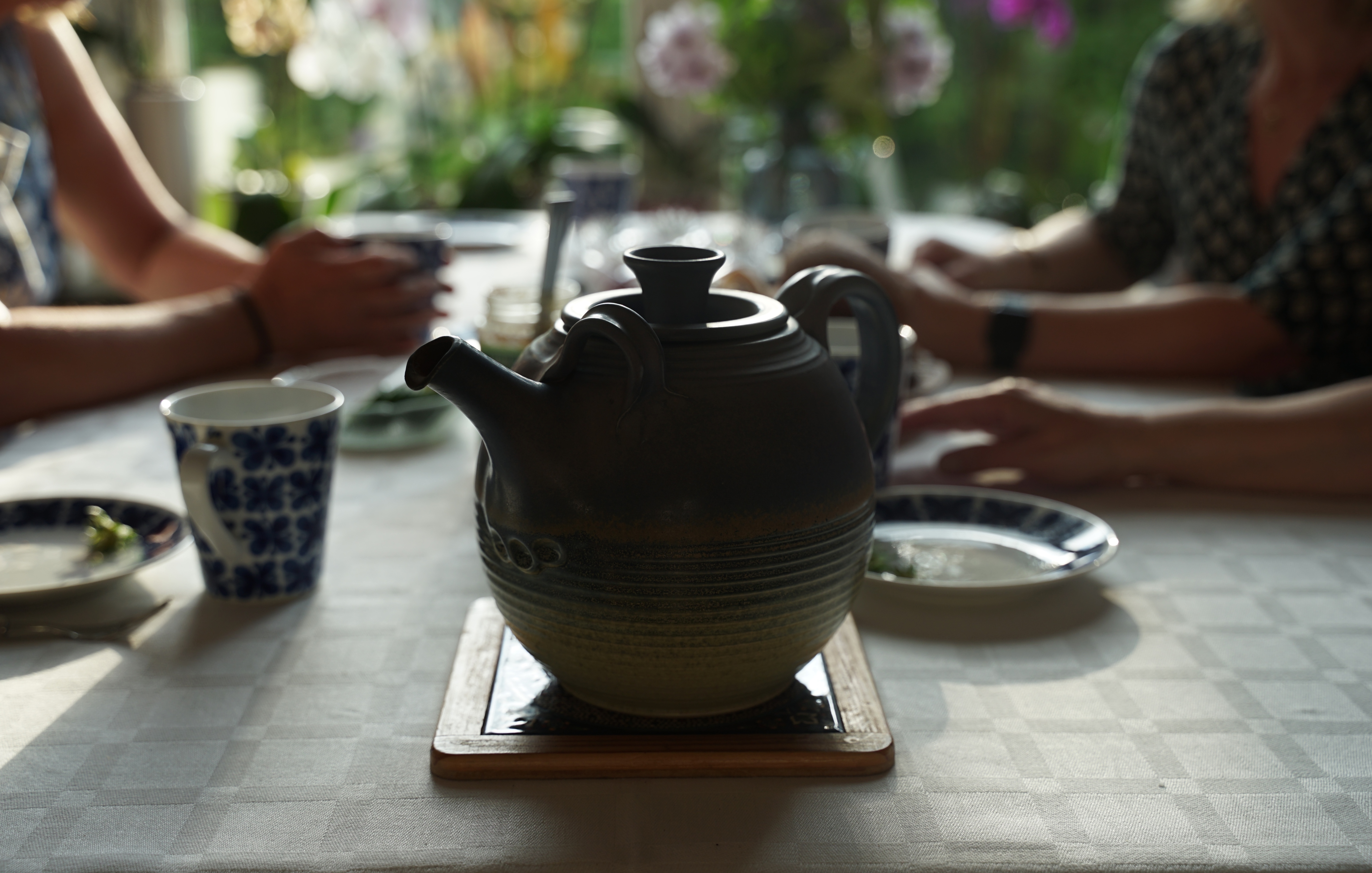 Tekannan står framdukad hemma hos Malin Bäckström, liksom bröd och en skål med jordgubbar. Det är knappt som hon, Catharina Winge Westholm, Marie Lundin och Marie Hansson hunnit sätta sig förrän samtalet är igång, en av dem berättar om en svår upplevelse på jobbet och de andra lyssnar och stöttar.