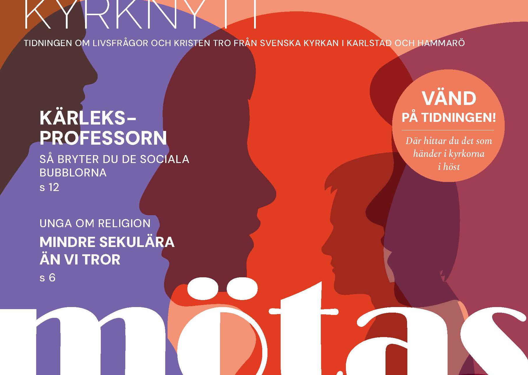I det här numret är temat mötas och vi får läsa om olika människors möten och mötesplatser som betytt mycket för dem. Vi får också vara med när elever på Molkoms folkhögskola, med vitt skilda livsåskådningar, diskuterar religion i klassrummet. I en artikel möter du sociologen Emma Engdahl som tipsar om hur vi kan försöka bryta våra sociala bubblor och hamna i nya sammanhang med nya människor.