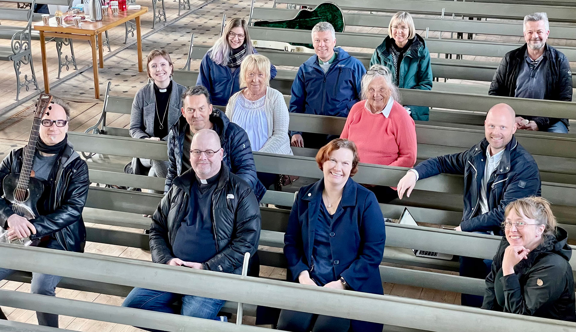 Fotnot. På bilden ovan tagen i Ignaberga nya kyrka ses de intervjuade: Urban Hagberg, andra från vänster på första bänkraden, Mattias Vad Jensen, längst till höger på andra bänkraden och Heikki Ranta, längst till höger sista bänkraden.