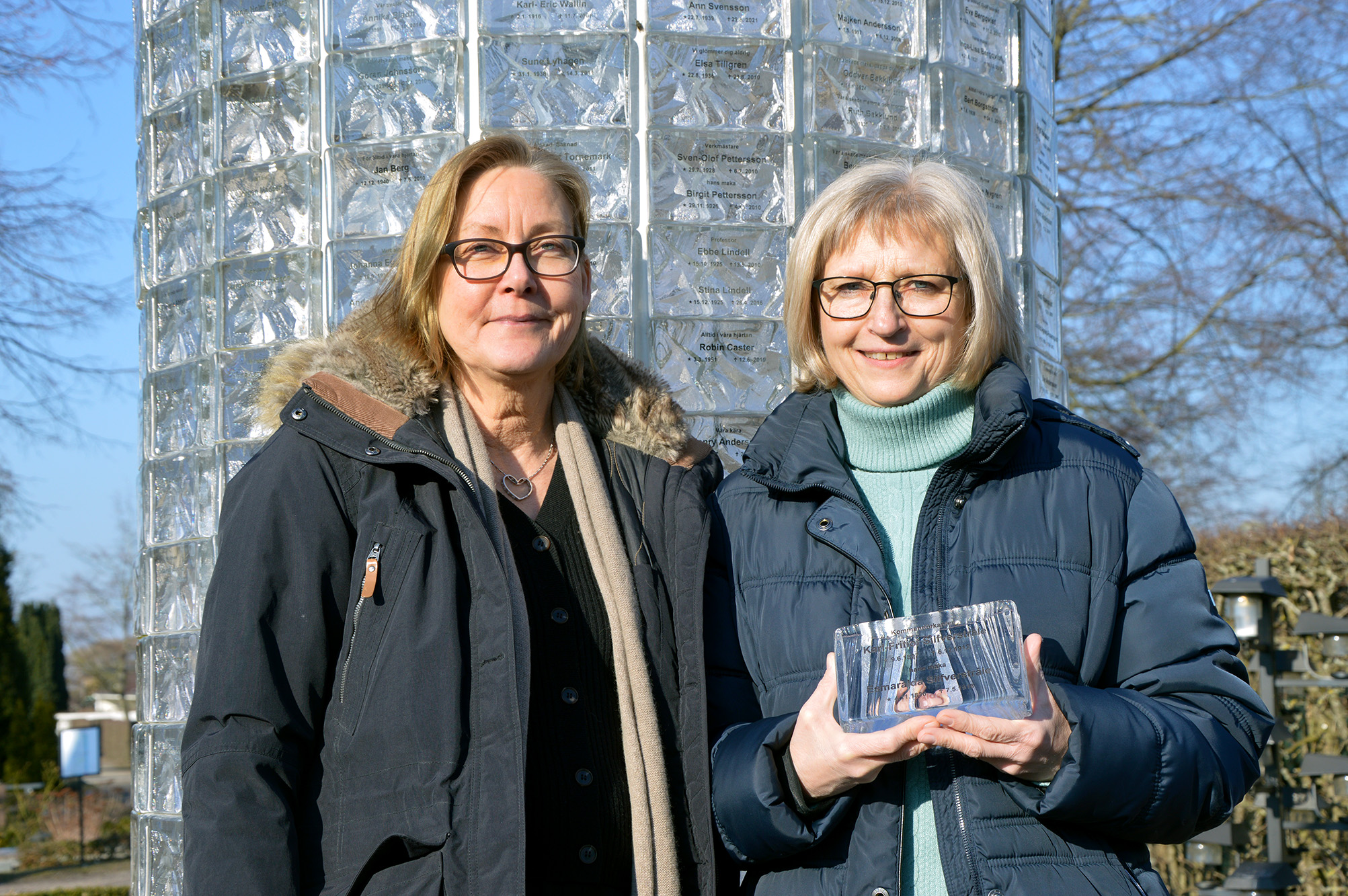 De glasblocken har enbart gravyr, inte färg. I stället har glasblocksväggen en mörkare bakgrund, så att inskriptionerna framträder bättre. Här är det gott om platser, och det lär dröja tills eventuell renovering behövs.