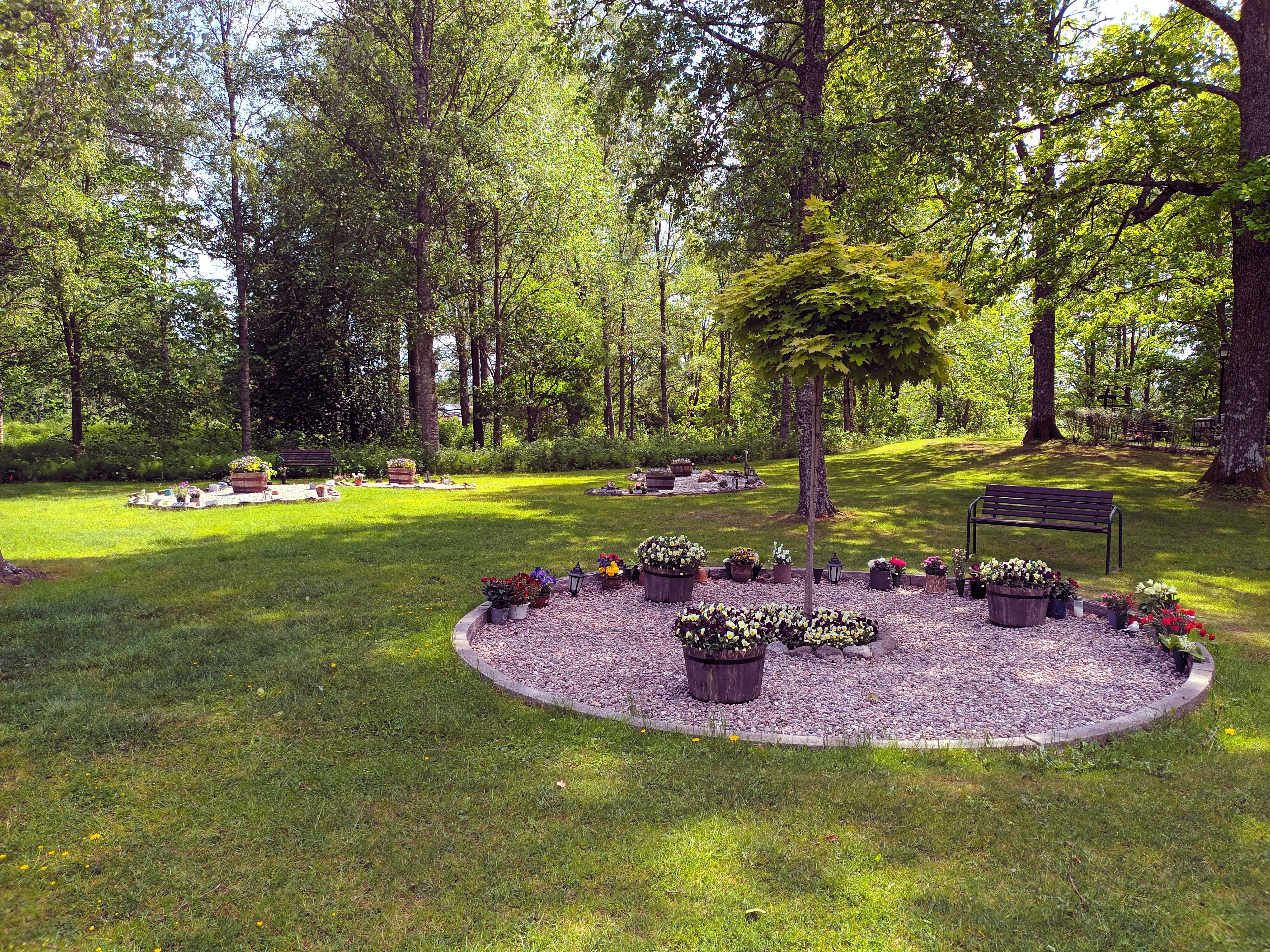 För att askgravplatsen ska vara en trivsam och harmonisk plats så plockar vi bort allt som inte är: