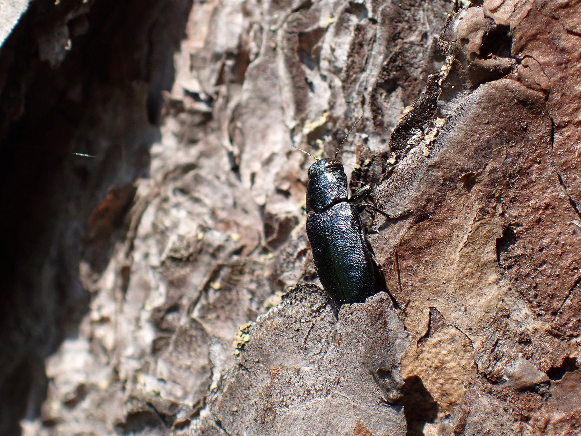 Vi hittar den ofta i barrskog, blandskog och öppna myrmarker. Larven är växtätare, med inriktning på bark och ved, främst av tall, mer sällan på andra barrträd, som gran, lärk och ädelgran, där den gräver långa gångar i trävirket.