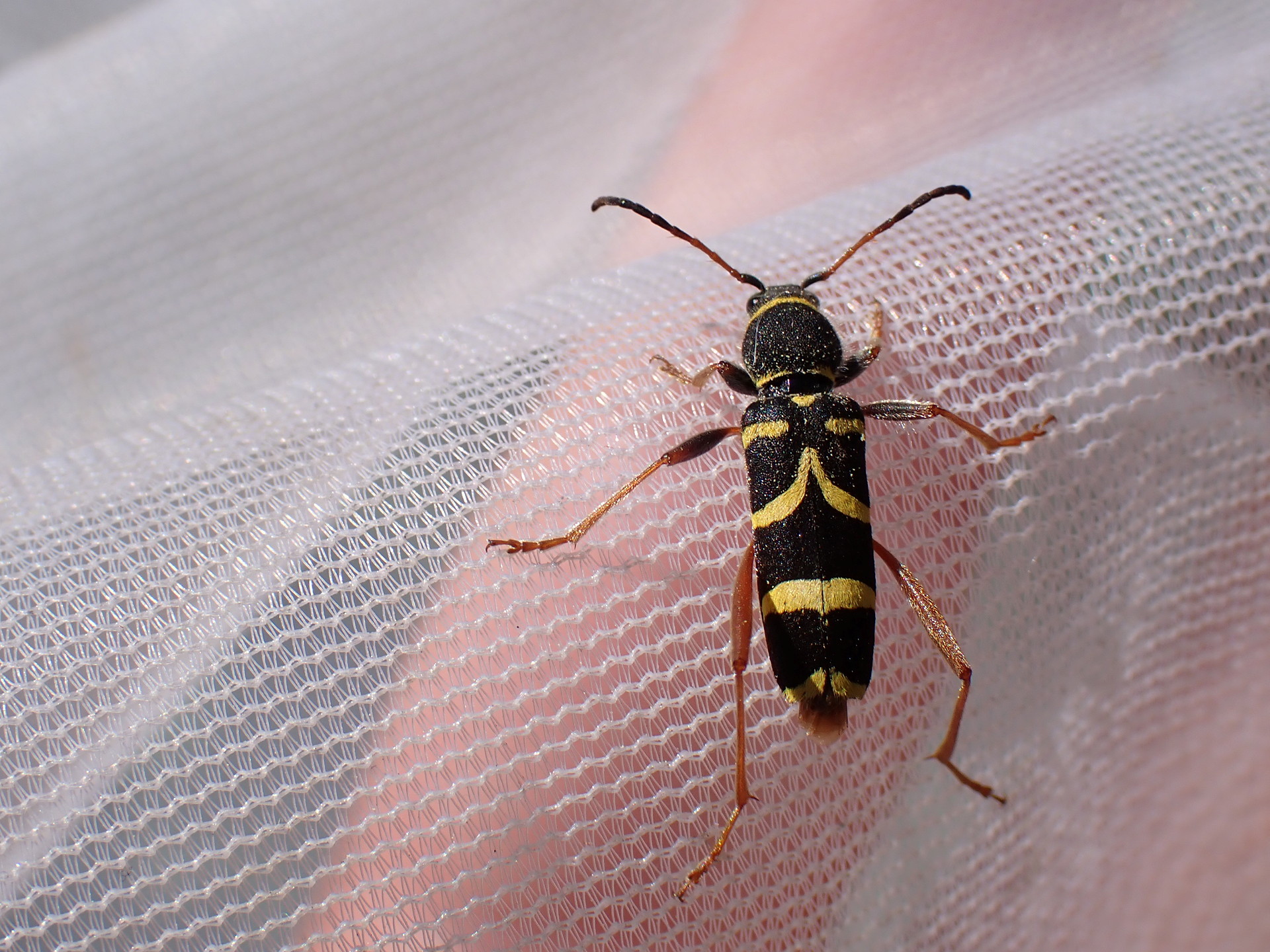 Med sin svarta kropp och gula mönster samt dess rastlösa rörelser, påminner den om en geting, med syfte att avskräcka rovdjur.