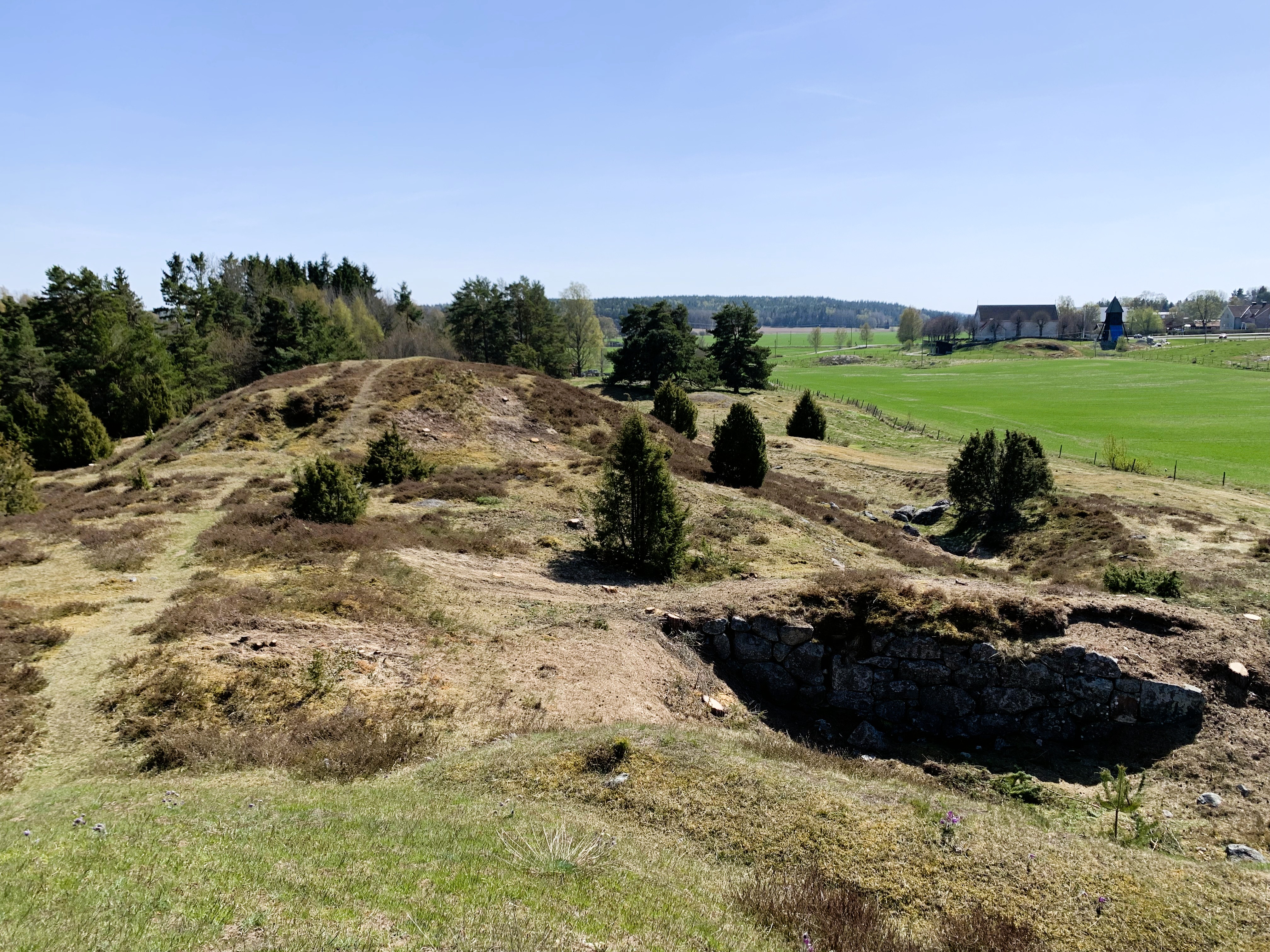 Strax söder om gravfältet ligger Vada medeltidskyrka från 1200-talet med prästgård, klockarboställe och skola.