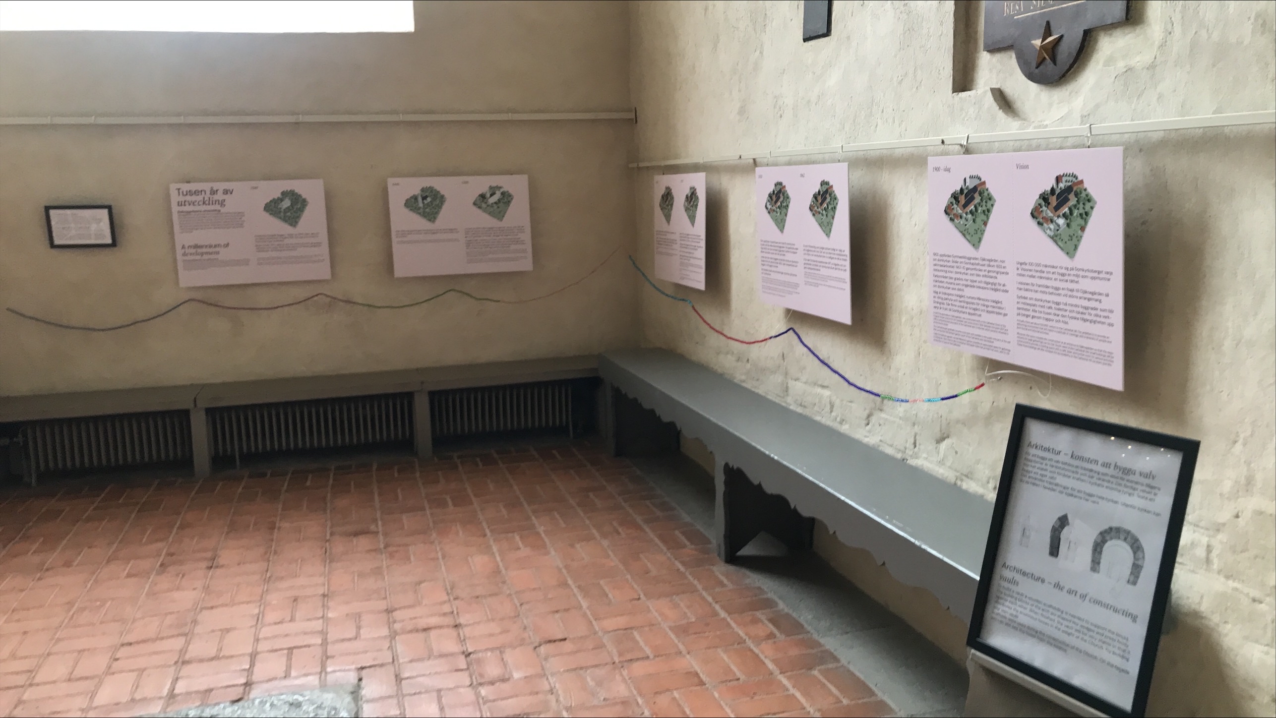 Bebyggelsens struktur på domkyrkoberget har formats genom århundradena. Se bilder från utställningen "Tusen år av utveckling" som finns i domkyrkan.