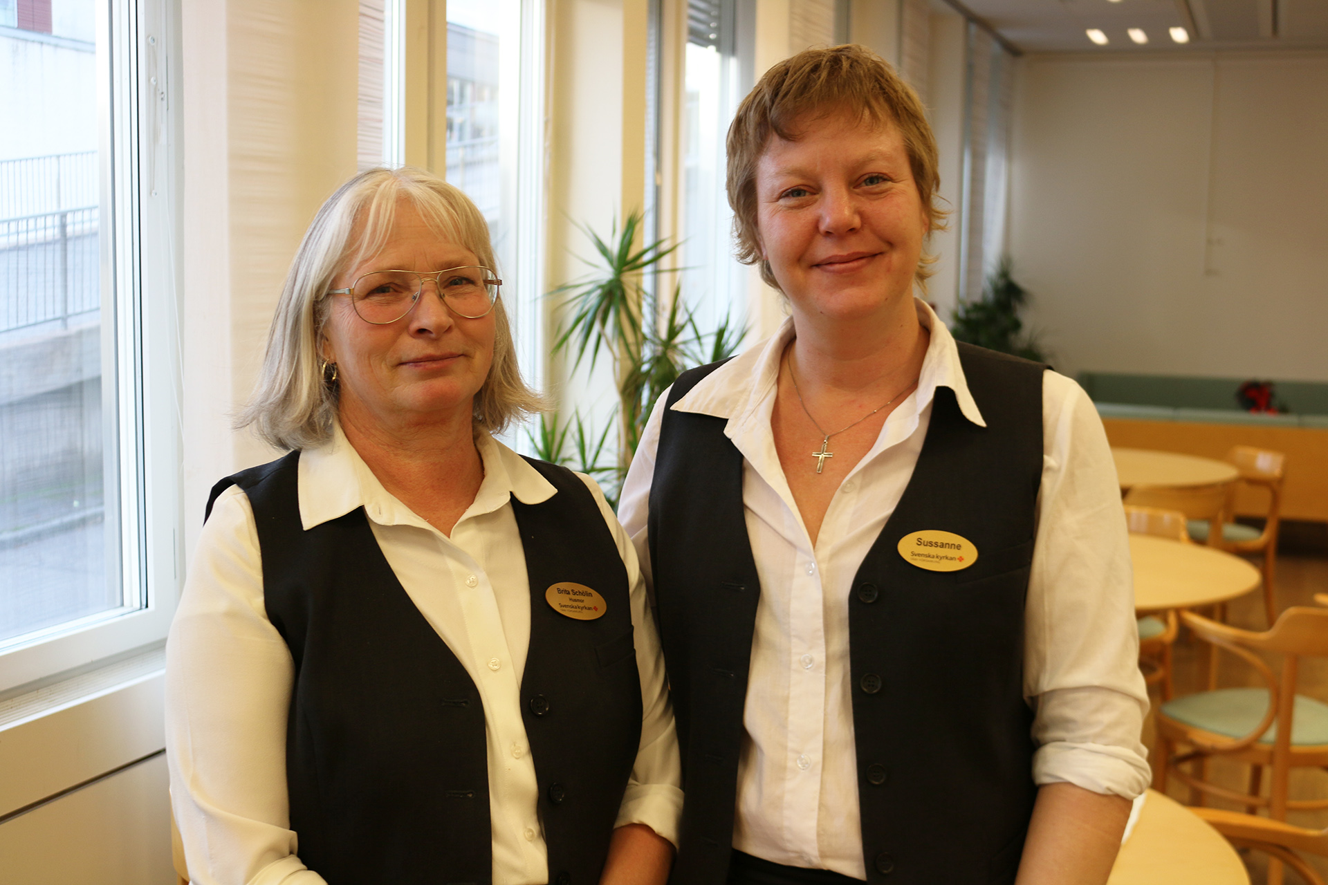 Brita Schöllin och Sussanne Edström är medarbetare i Täby församling och har båda titeln husmor, vilket bland annat innebär att ha hand om allt det praktiska kring minnesstunder, bland annat bokning, planering av inköp, dukning och servering. Sussanne och Brita ser till att minnesstunderna på Täby gård, får en fin inramning. Det kan vara i snitt fyra minnesstunder per vecka, och varje sammankomst är viktig i sig.